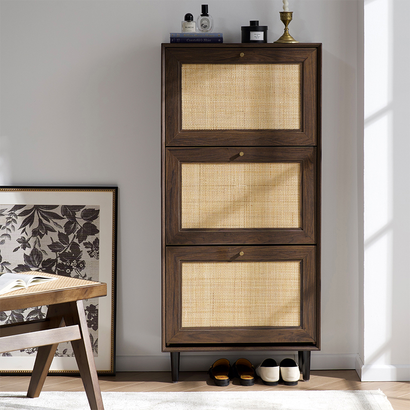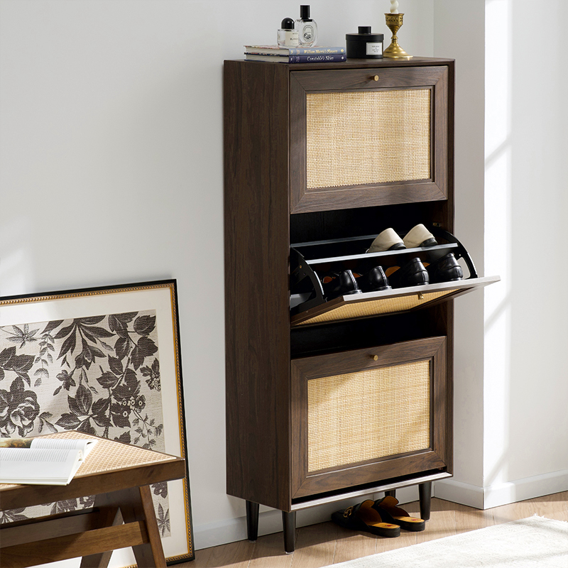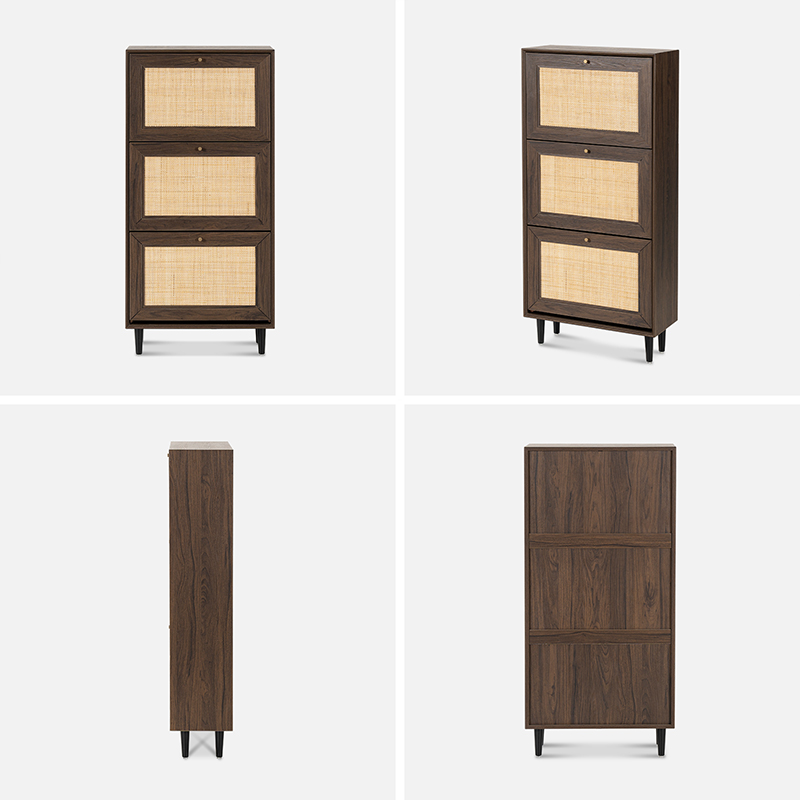 ميزة أخرى لخزانة الأحذية المصنوعة من خشب الروطان ذات الثلاثة أبواب Y-C39 هي متانتها ومتانتها. يضمن هيكل خشب الروطان قدرة الخزانة على تحمل الاستخدام اليومي ومقاومة التآكل. علاوة على ذلك، من السهل الحفاظ على الخزانة، حيث يمكنك ببساطة مسحها بقطعة قماش مبللة للحفاظ على مظهرها نظيفًا ومنعشًا.