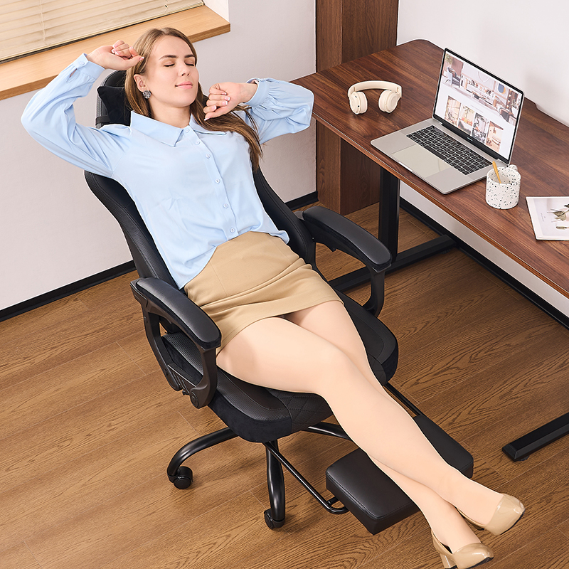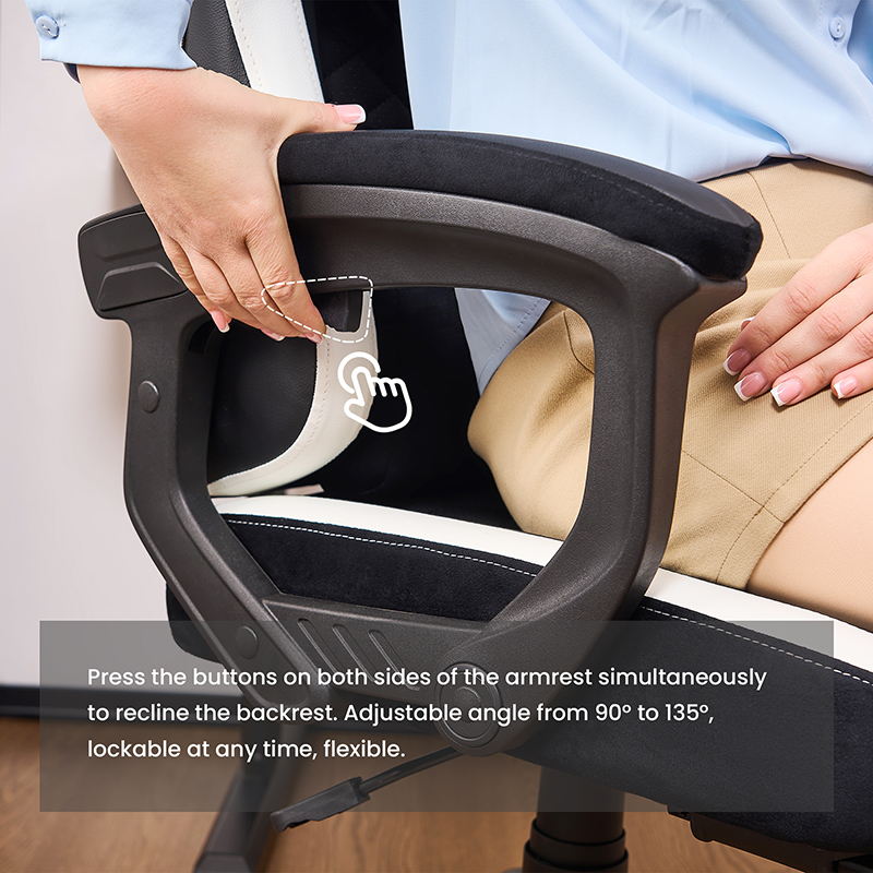 زاوية إمالة ظهر الكرسي: يجب أن يكون ظهر الكرسي قادراً على ضبط زاوية الميل لتوفير خيارات جلوس وطرق استرخاء مختلفة، ودعم منحنى الظهر الطبيعي.