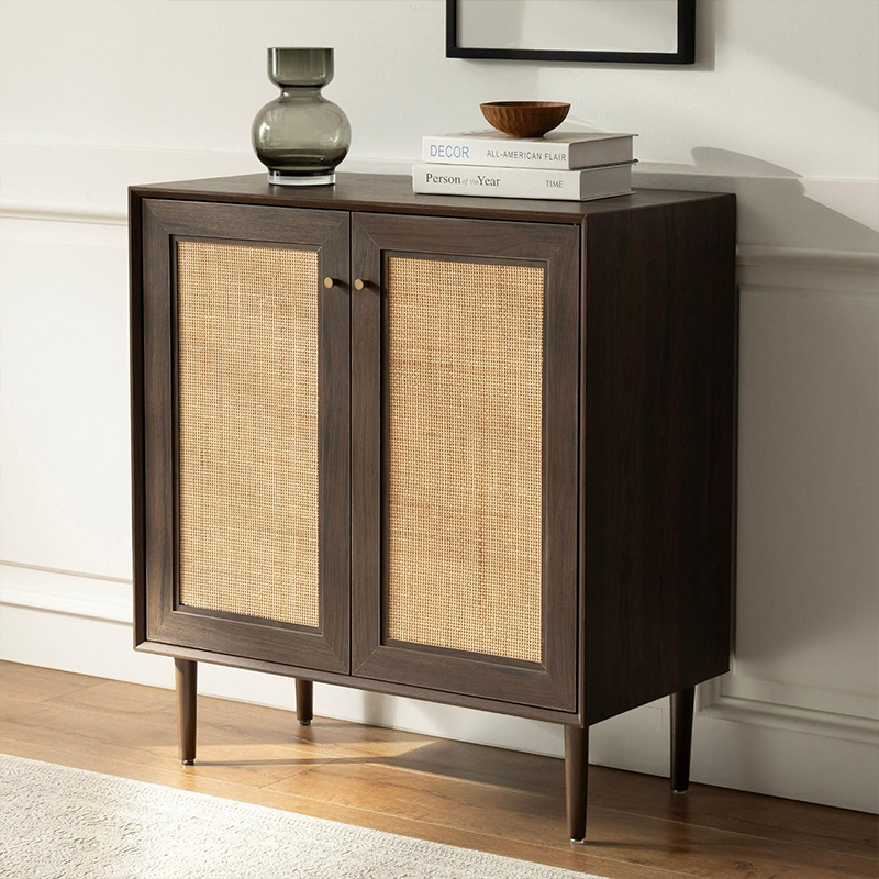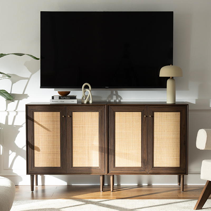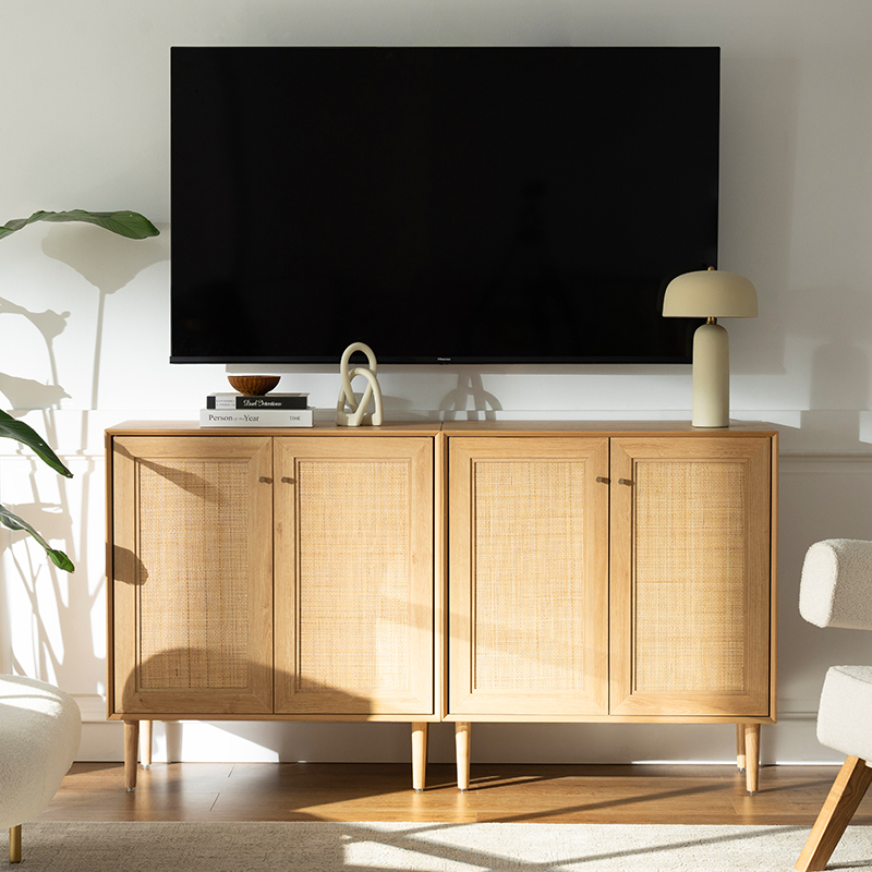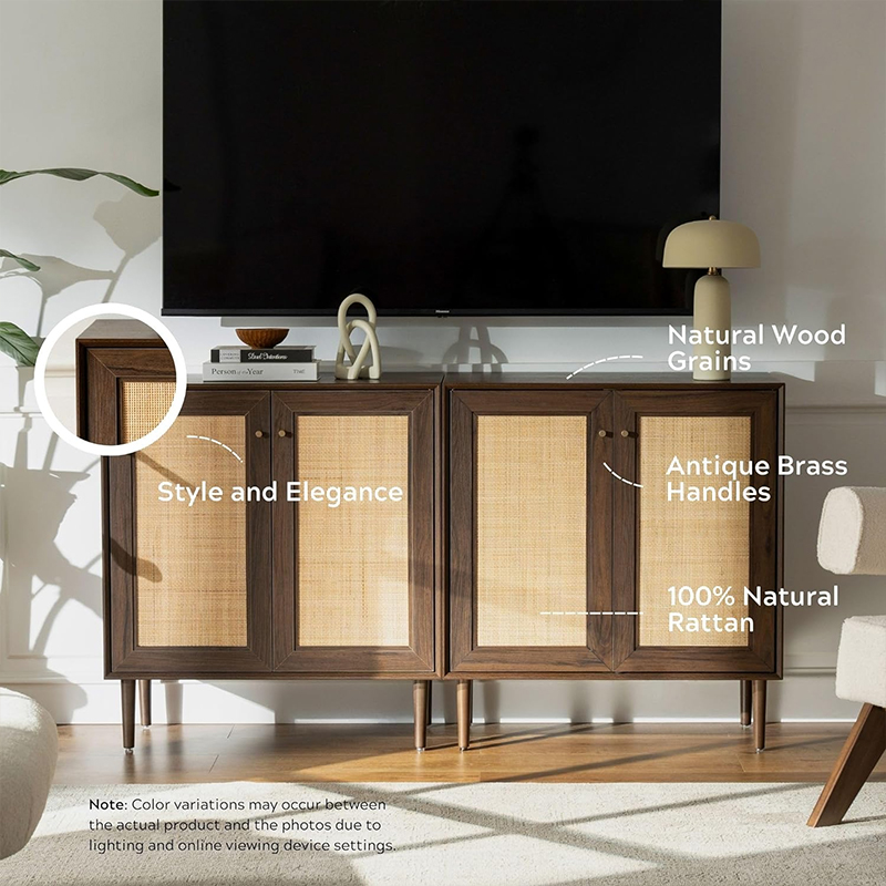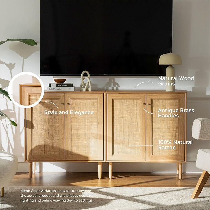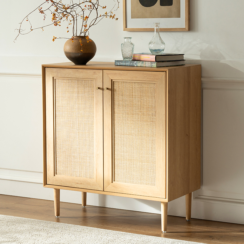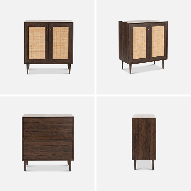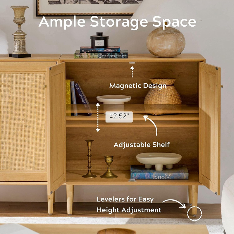 | مادة | لوح من الخشب الصلب مع لمسة نهائية من MDF وزخرفة من الروطان الحقيقي |